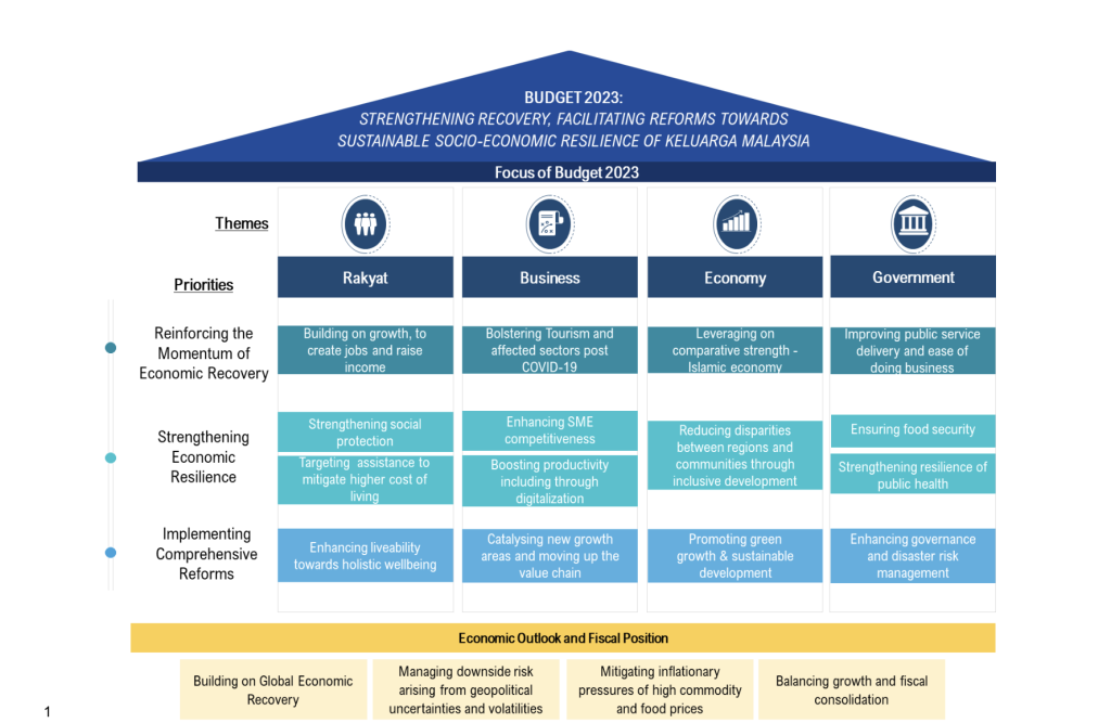 The information provided gives an outline of the broad priorities of Malaysia’s Budget 2023 for the different themes (Rakyat, business, economy and government) under the 4 priority areas. It spells out the Malaysia Government’s focus areas and as such having this information in advance of tabling the EBP provides clear bounds of what needs to be in the budget.