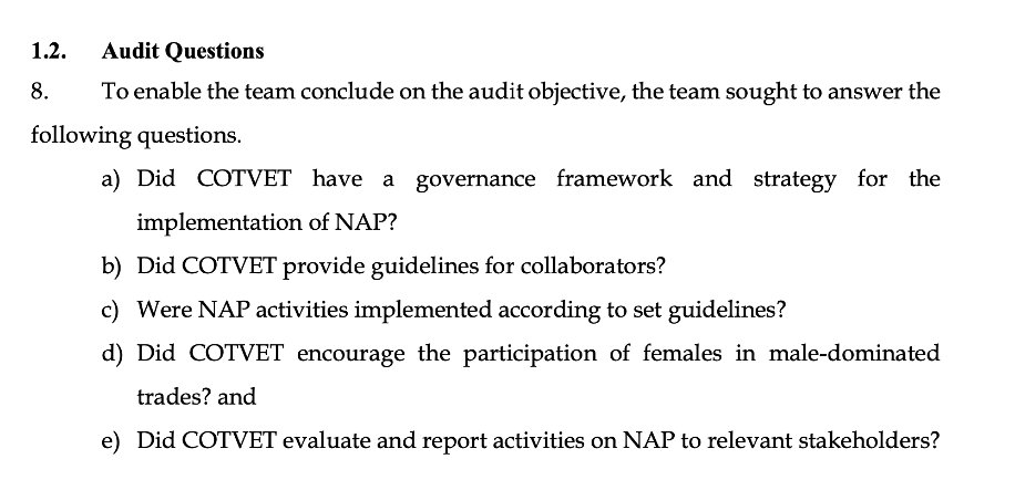 Review the audit questions below from an excerpt of a performance audit: