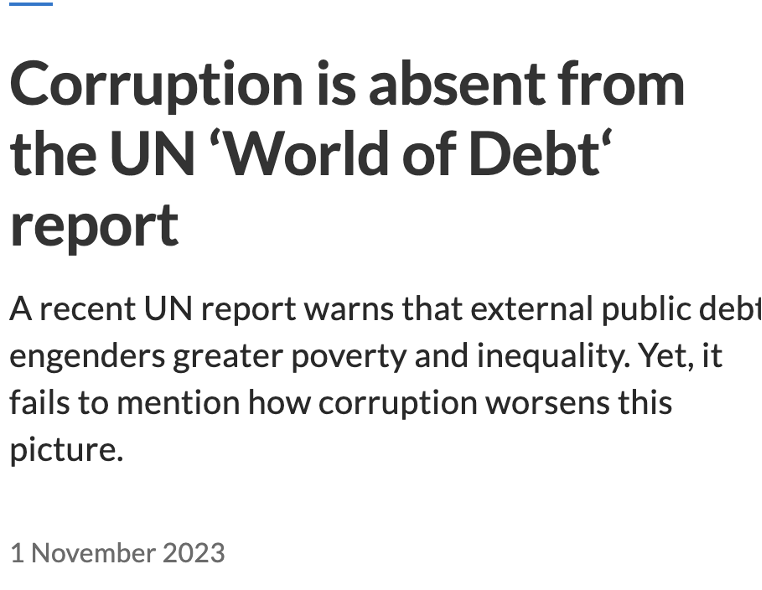 I agree, corruption is a key contributor of debt crises in mot countries. I like how it is brought out in the context above.
